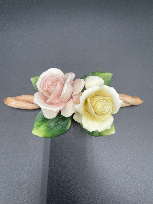 Vintage Fine Bisque Porcelain Rose Sculpture w/ Two Buds on Branch