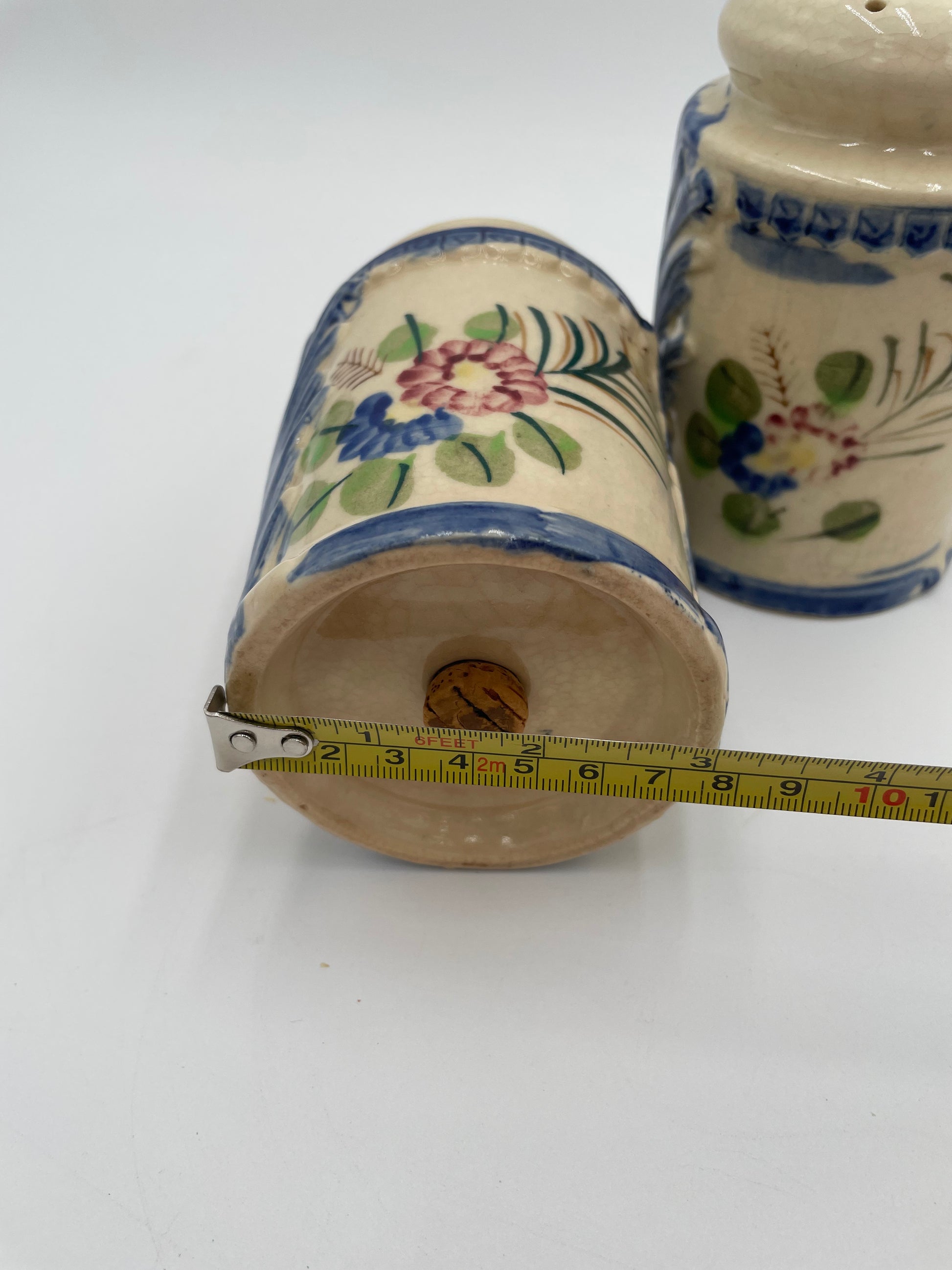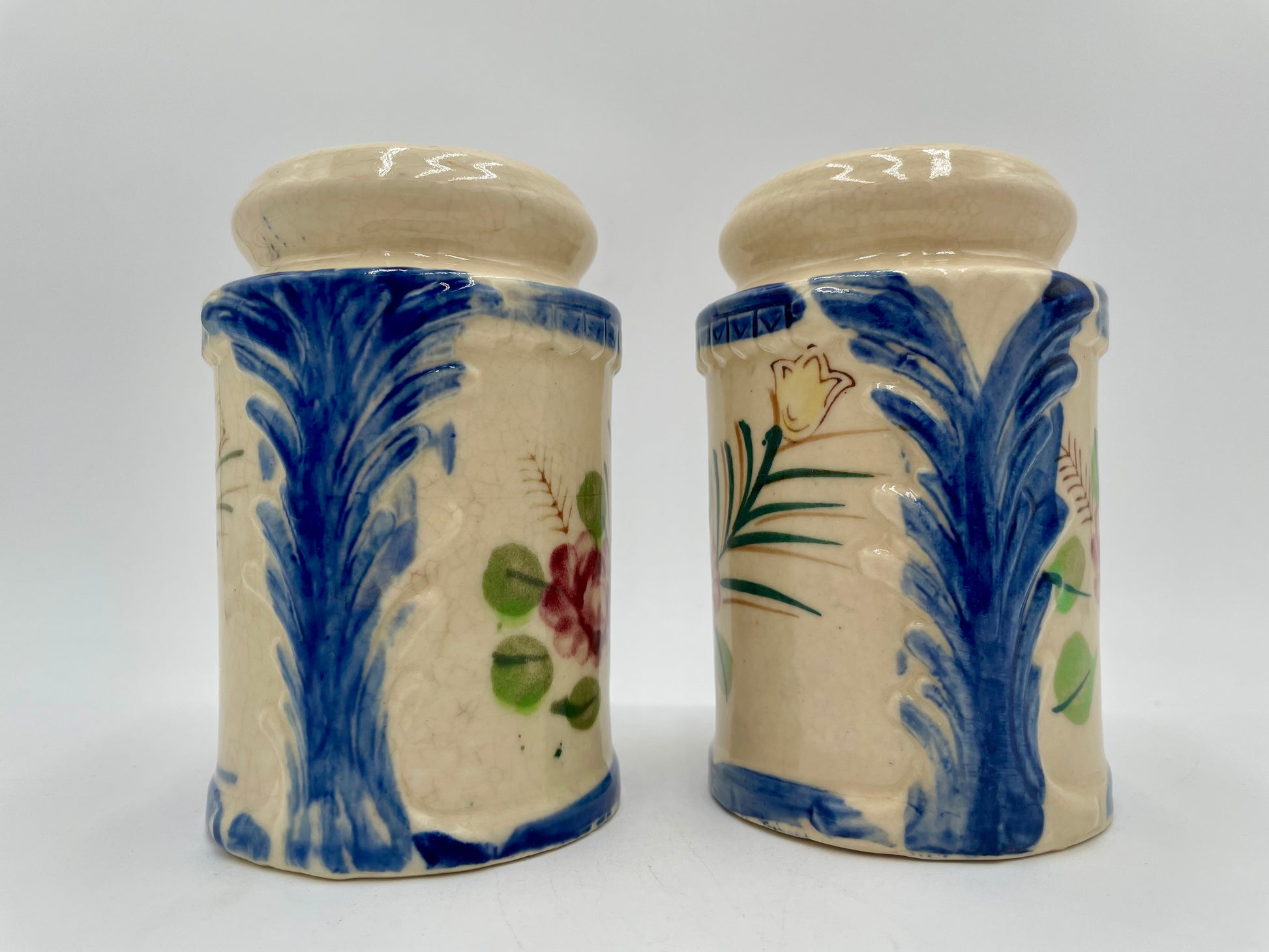 Vintage Large Ceramic Salt & Pepper Shakers Hand Painted Floral & Cobalt Blue - Japan