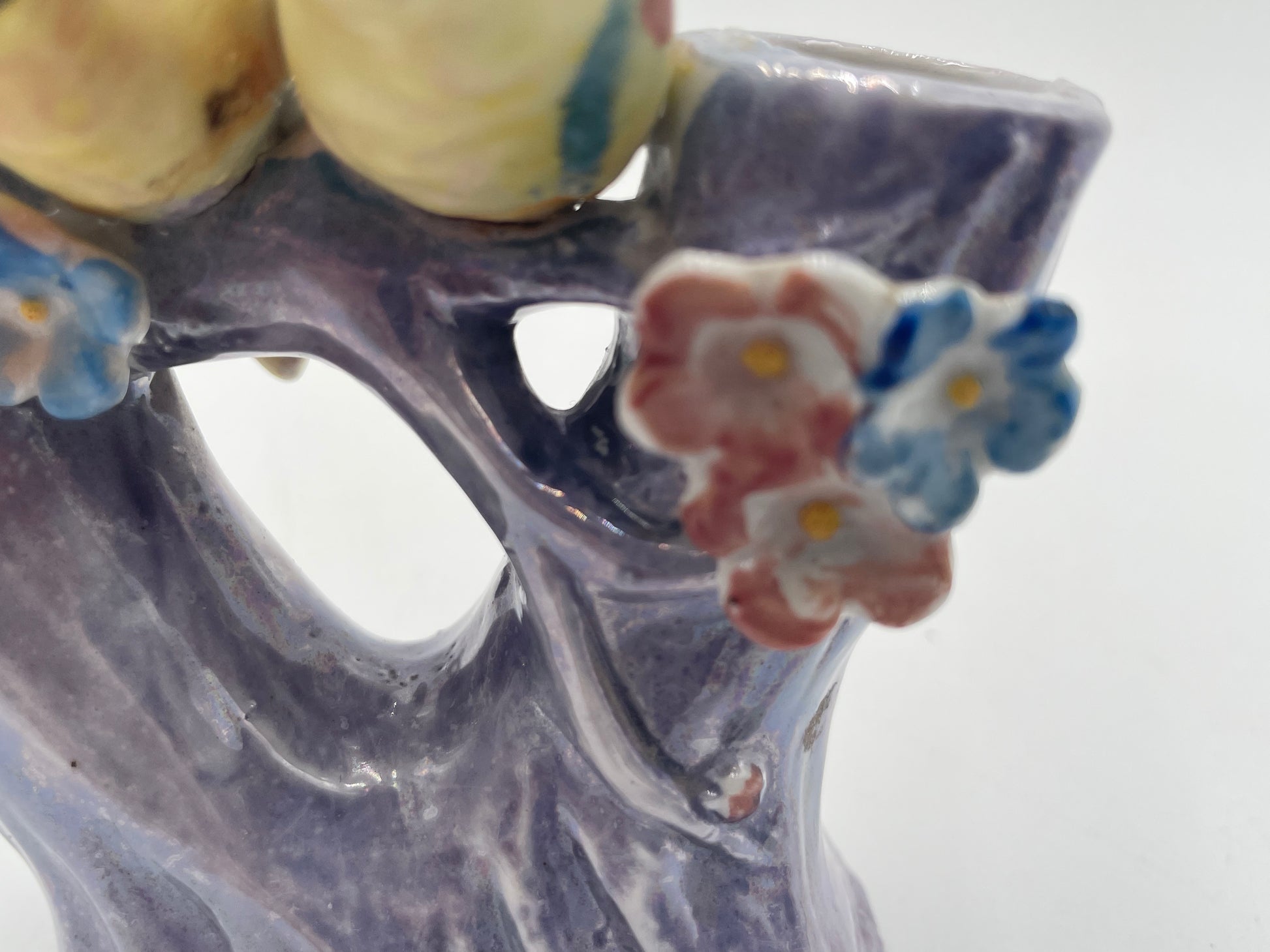 Vintage Porcelain Parakeet Double Bud Purple Flower Vase Japan